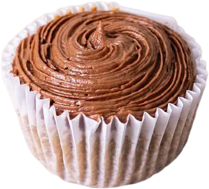Pan de chocolate con frosting de mantequilla, queso crema y un espiral de ganache.